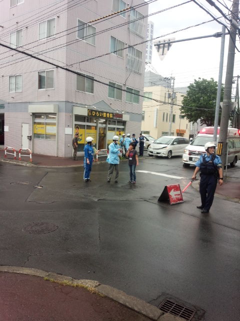 今週は「夏の交通安全週間」だそうで、昨日東区連合町内会の動員で車道に向かって「交通安全」のフライヤーをかかげる交通安全啓発行動に行ってきました。集合時間しか聞いてなかったので、早めに行きましたが、やはり始まってました。町内会活動というのは集合時間の20分前にはみなさん集まっているんですね、集合時間を決める意味がないように思うけどそうなんです。で、「何時までするんですか?」と聞くと「だいたい30分くらいの予定だけど、警察署長と東区区長がきて帰ったら解散」との事。30分くらいして、職員を従えてやってきました。「ご苦労様です」と手を振りながら言って歩いて、次ぎの旗ふり場所に行きました。